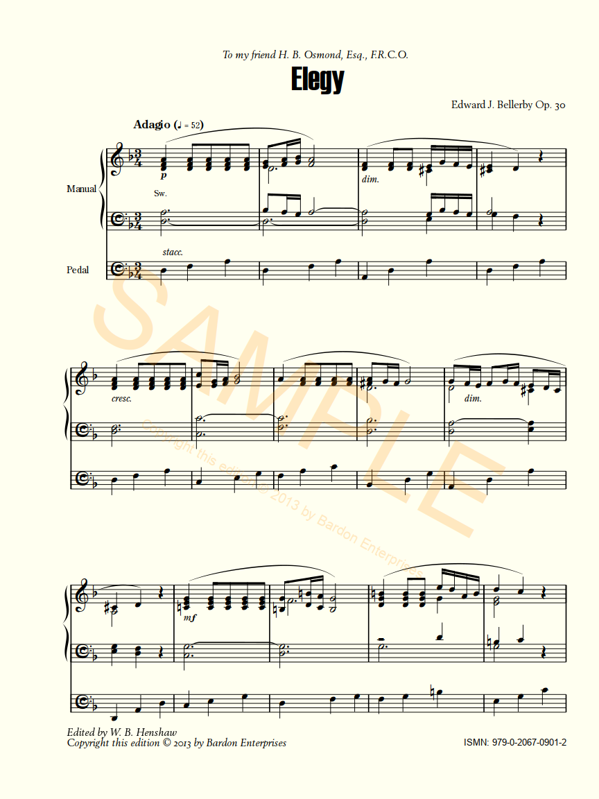 Elegy (Op. 30) for organ by Edward J. Bellerby