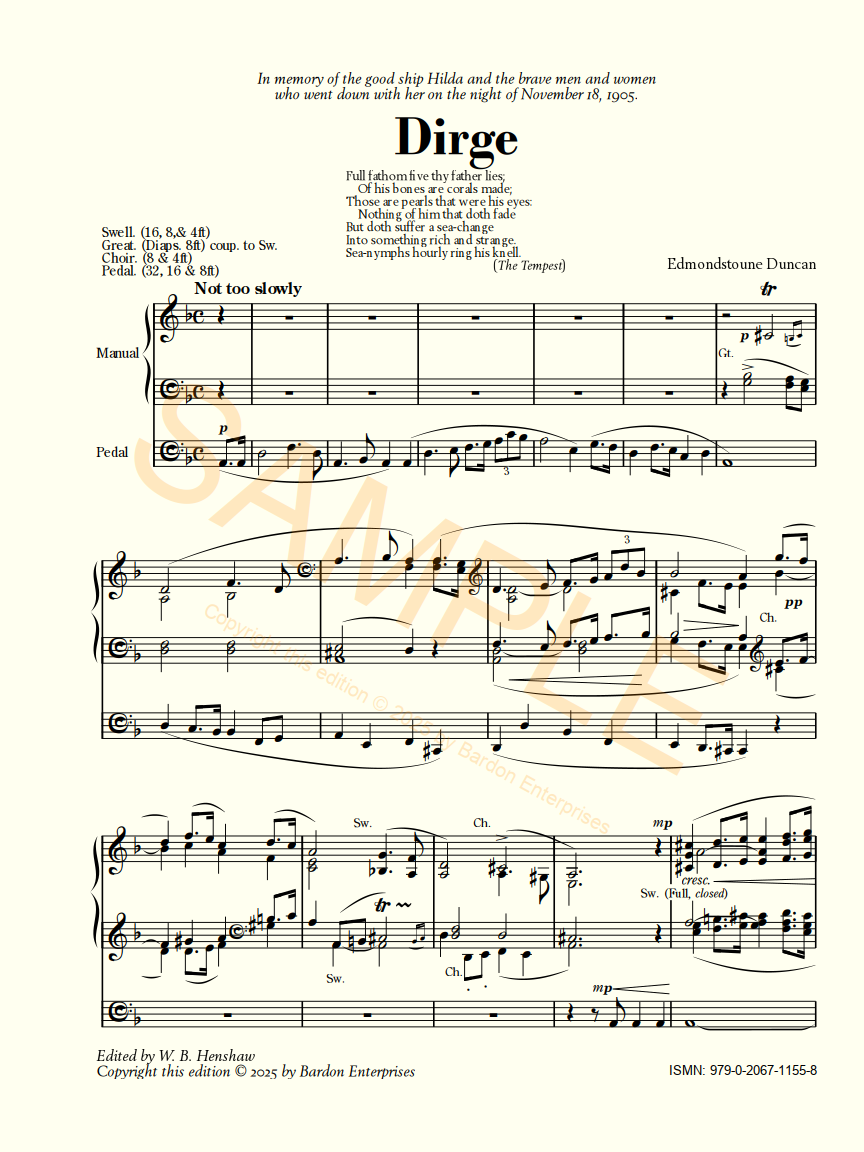 A Dirge in D minor for organ by Edmondstoune Duncan
