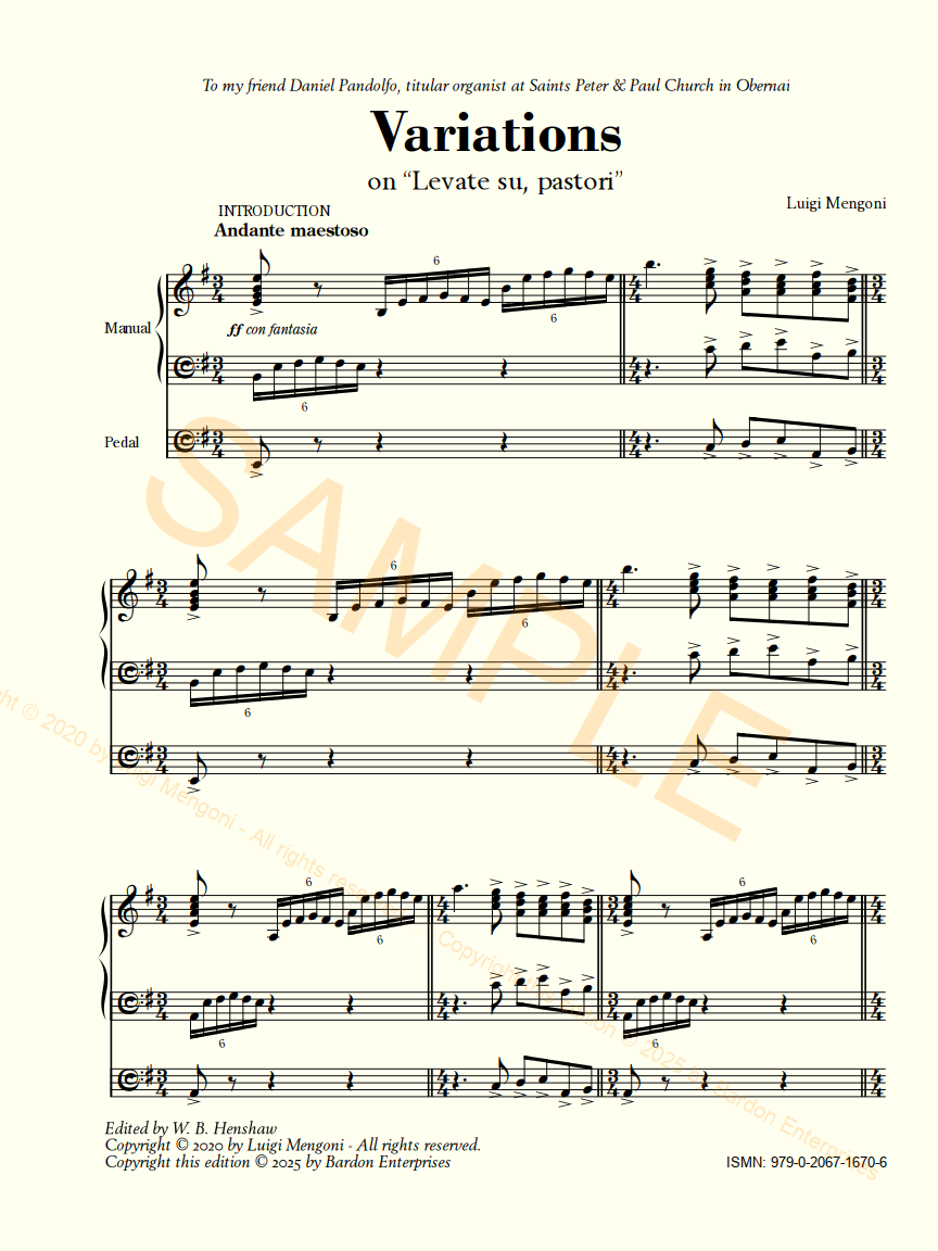 Variations on “Levate su, pastori” für Orgel von Luigi Mengoni
