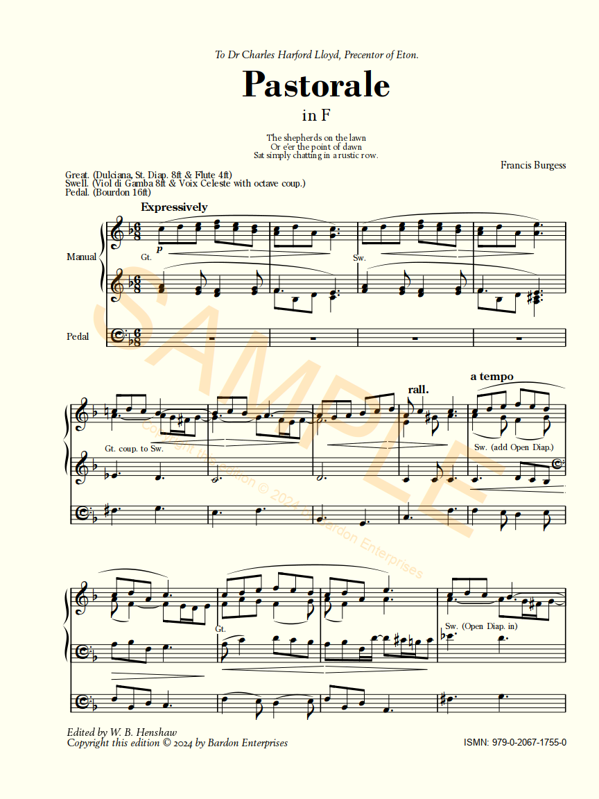 Pastorale in F for organ by Rev. Francis Burgess