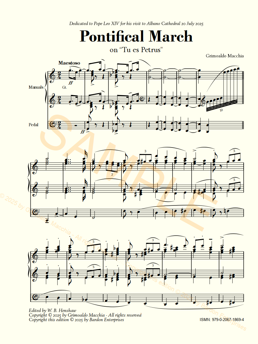 Pontifical March on “Tu es Petrus” for organ by Grimoaldo Macchia