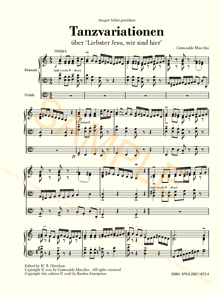 Tanzvariationen über “Liebster Jesu, wir sind hier” für Orgel von Grimoaldo Macchia